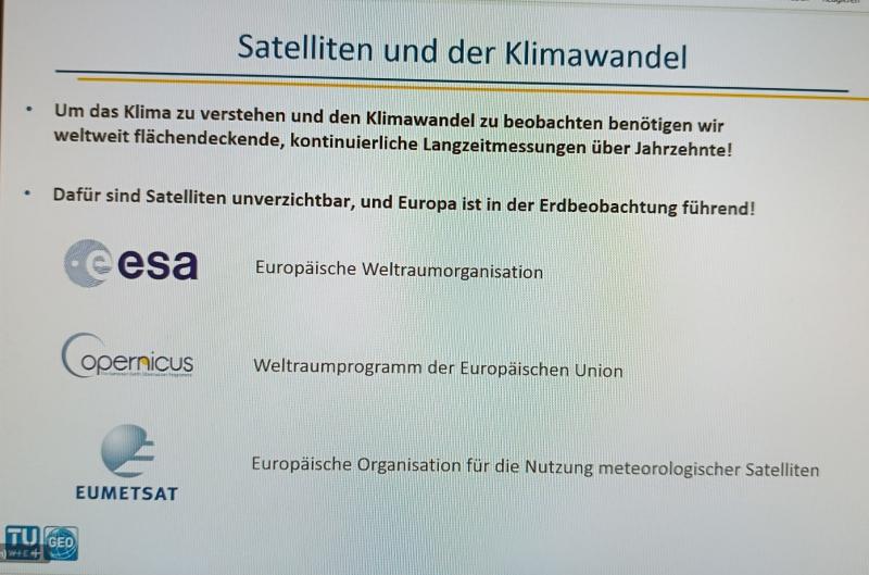„Der Vortrag hat mir eine andere Sichtweise auf den Klimawandel gezeigt. Ebenfalls wurde das mir neue Fachgebiet der Geodäsie gut erklärt und die vielfältigen Möglichkeiten der Satellitenbeobachtung aufgezeigt.“